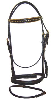 Bridles2313 BRIDLE WITH GOLDEN PVC DECORATIONS ON BROWBAND, RAISED NOSEBAND PADDED Related products Bridles2304 BRIDLE WITH HALF ROUND NOSEBAND AND BROWBAND PADDED Bridles202 BONFIRE BRIDLE WITH WEB REINS OR LEATHER REINS Bridles0016 BRIDLE WITH MEXICO NOSEBAND